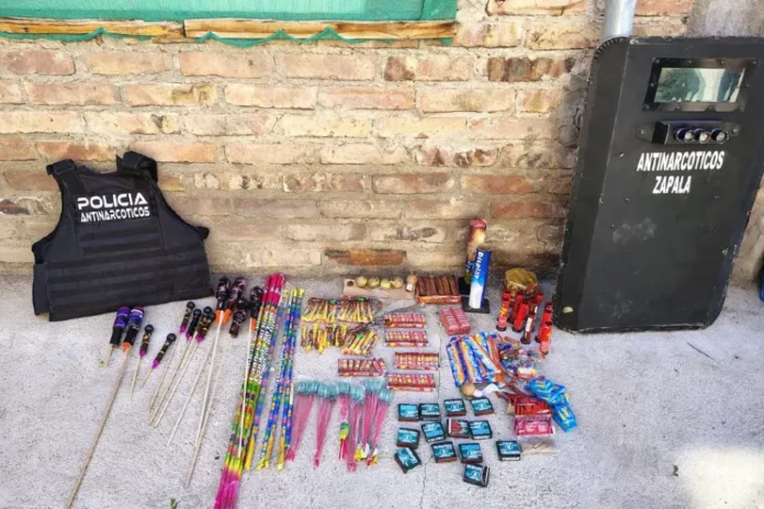 Uno de los aspectos más relevantes del operativo fue el hallazgo de una gran cantidad de pirotecnia, incluyendo material prohibido y de alto poder explosivo, cuyo uso está prohibido en la provincia. Ante esta situación, se dio inmediata intervención a la municipalidad de Zapala, a través de la dirección general de Inspectores, en articulación con la Fiscalía Única local. Entre los elementos secuestrados se contabilizaron morteros, candelas, petardos, cañas voladoras y otros artefactos que representan un serio riesgo para la seguridad pública.